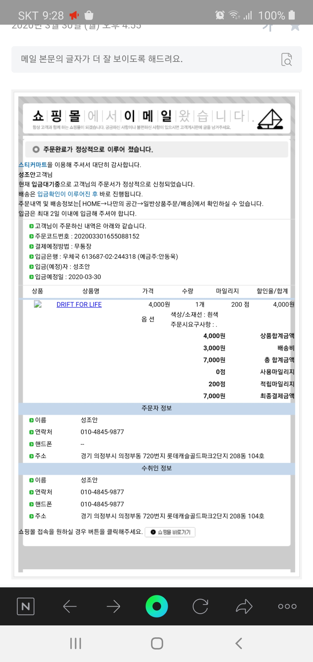 아직까지 물건도안오고, 4일 어제날짜로