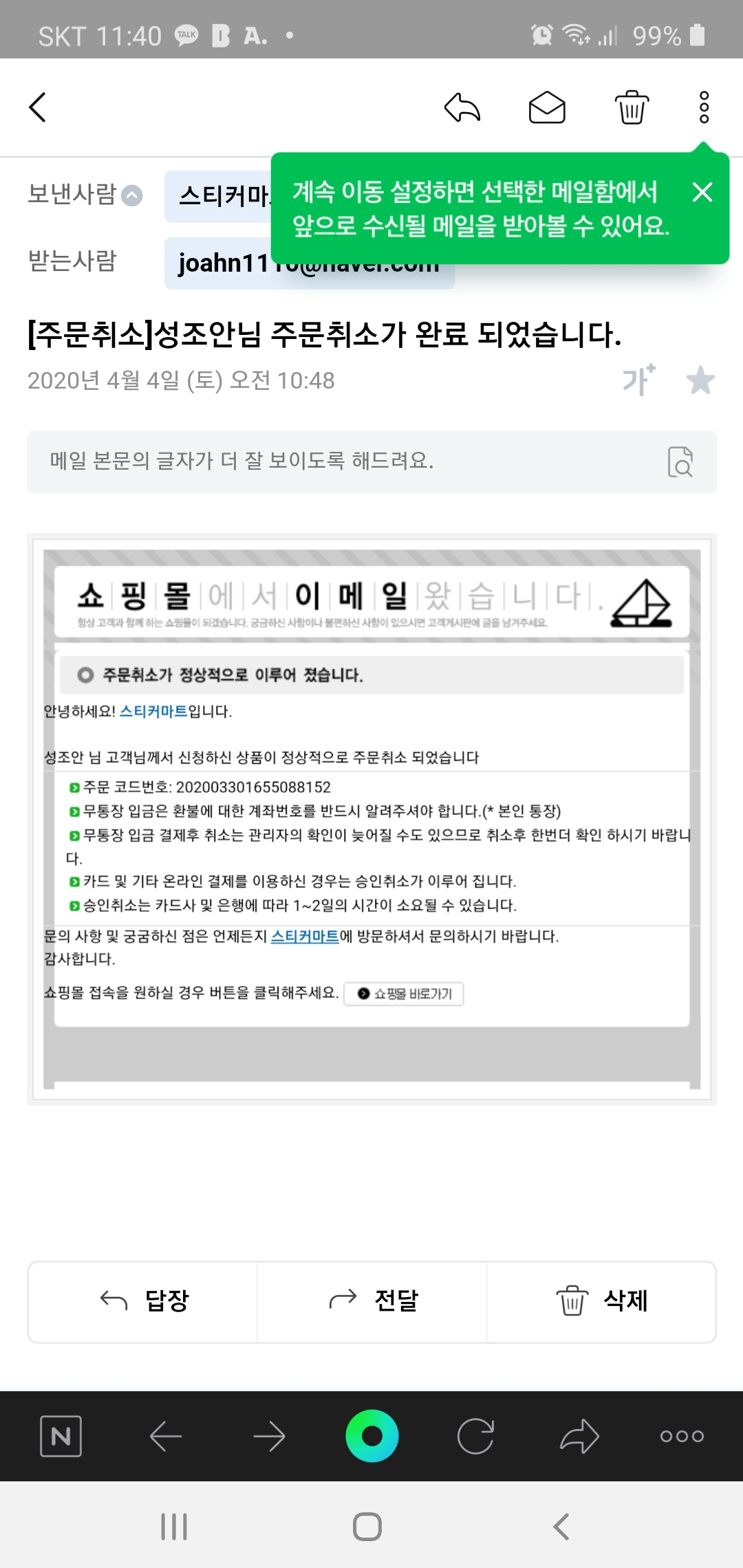주문취소되었다는 메일이 왔는데...